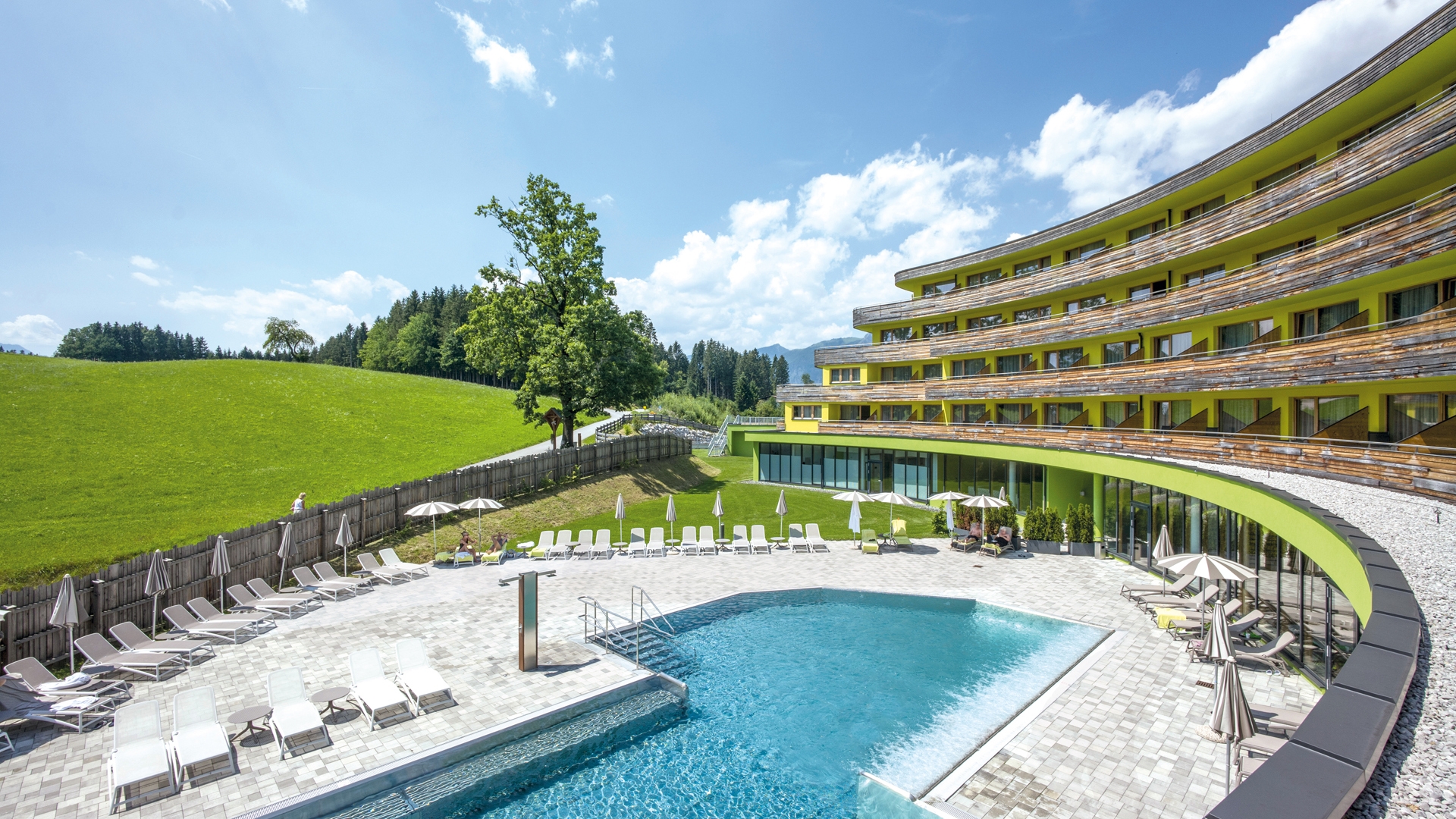 DAS SIEBEN liegt auf einem Hochplateau in Tirol. Das Gesundheits-Resort bietet in alle Himmelsrichtungen fantastische Aussichten. Wenn Sie sich in unserem beheizten Außenschwimmbecken entspannen, begegnen Ihnen im Süd-Westen die Ausläufer der Kitzbüheler Alpen. Unsere Panorama-Saunen gewähren Ihnen einen unvergesslichen Blick in Richtung Osten auf die Gipfel des Kaisergebirges; im Nord-Westen liegen die Brandenberger Alpen.