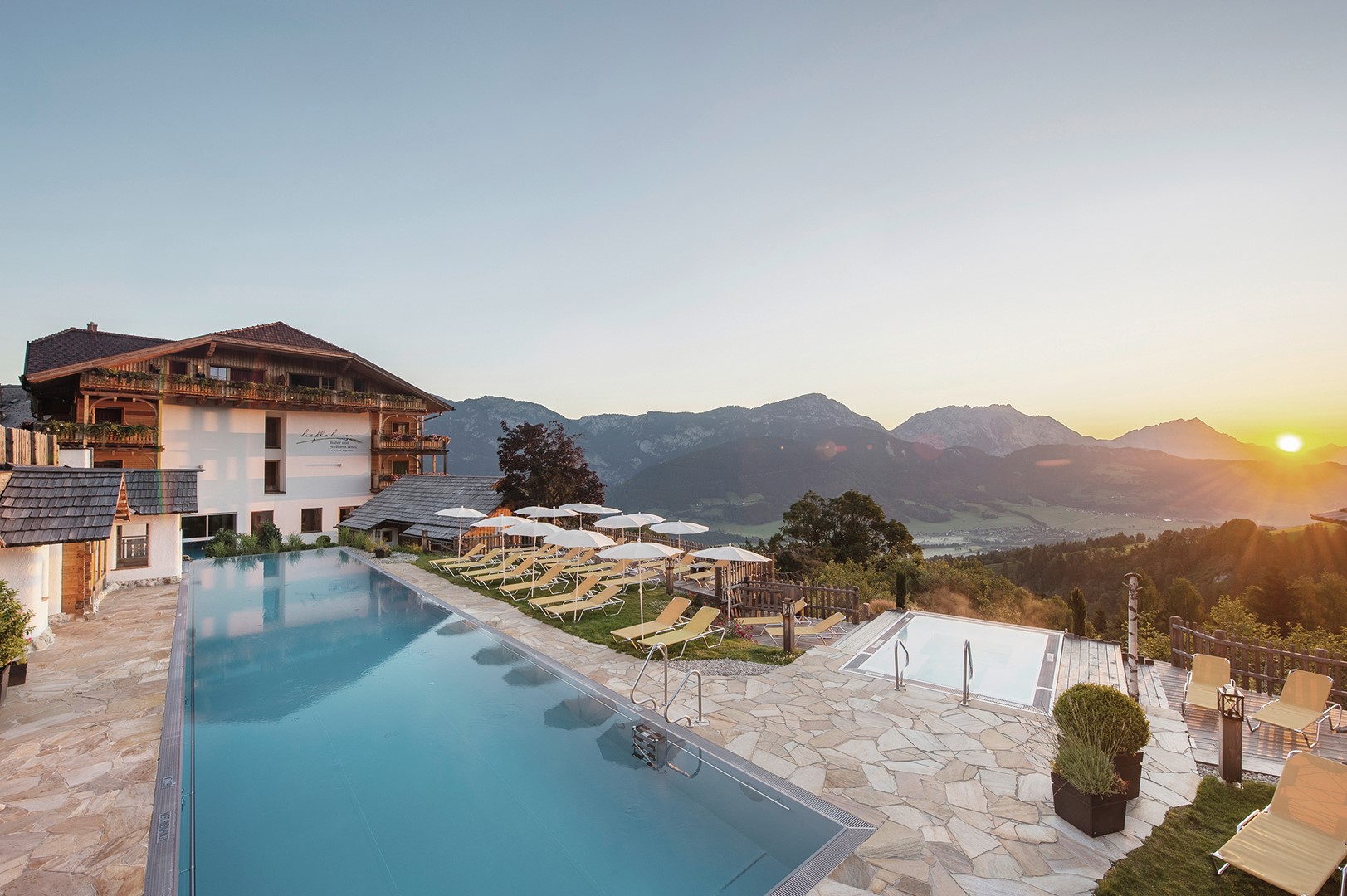 Die atemberaubenden Schladminger Bergwelten erkunden, im Premium Alpin SPA die Seele baumeln lassen und kulinarisch Exzellentes aus der Naturküche verkosten – Im Natur- und Wellnesshotel Höflehner****Superior in Haus im Ennstal erleben Sie auf 1.117 Metern Seehöhe ganzjährig exklusiven Urlaubsgenuss mit intensivem Erholungseffekt.