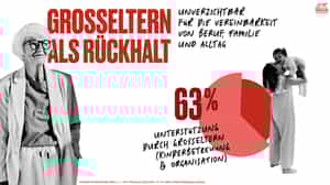 Großeltern erweisen sich als wichtige Stütze im Alltag: 63 Prozent der Befragten werden von ihren Eltern bei der Kinderbetreuung und Organisation unterstützt. Für viele sind Großeltern damit eine entscheidende Voraussetzung für die Vereinbarkeit von Beruf und Familie sowie Alltagsbewältigung.