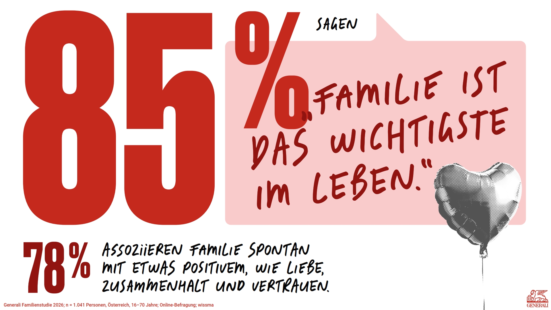 Wien – Familie ist und bleibt der größte Rückhalt im Leben der Menschen in Österreich, zugleich gerät sie im Alltag zunehmend unter Druck - organisatorisch und mental. Das zeigt die Generali Familienstudie 2026, für die über 1.000 Menschen im Alter von 16 bis 70 Jahren im Rahmen einer repräsentativen Online‑Erhebung, ergänzt durch qualitative Tiefeninterviews, befragt wurden. Die Ergebnisse geben Einblicke in Werte, Belastungen und Bedürfnisse modernen Zusammenlebens. Für die Generali ist Familie ein Schwerpunkt des Jahres 2026 und ein zentrales Handlungsfeld ihrer Positionierung als lebenslange Partnerin.